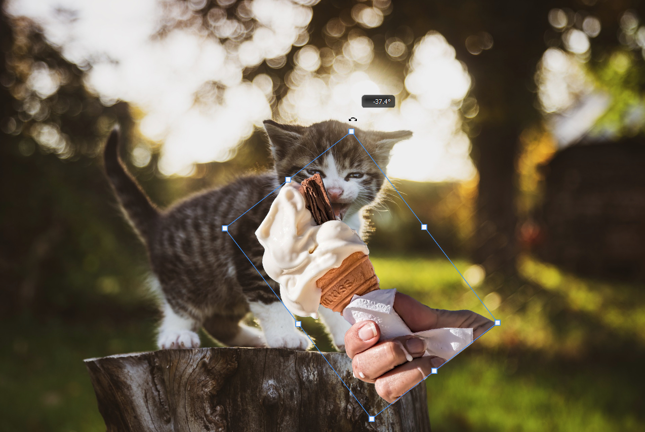 4. 사이즈를 줄이고 회전시킨 아이스크림을 모서리에 배치하고 Enter 키를 눌러 완성합니다.