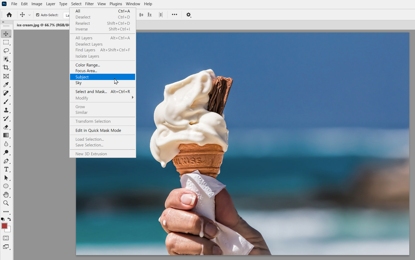 1. Select > Subject 메뉴로 피사체를 선택합니다.