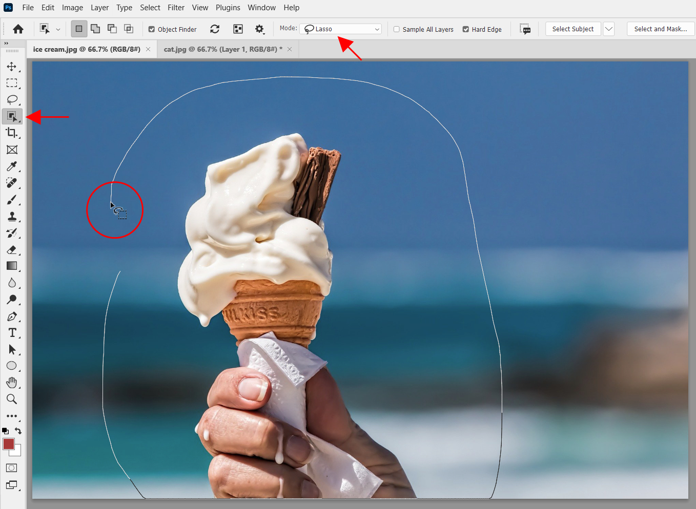 2) 모드(Mode)에서 올가미(Lasso) 옵션 지정