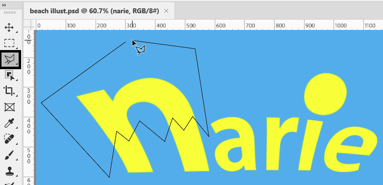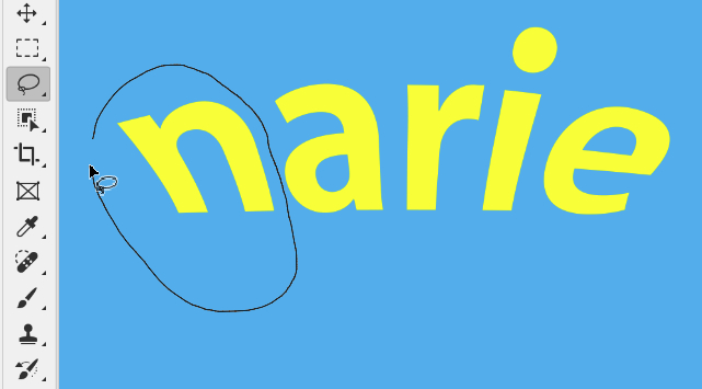 2. 올가미 도구 (Lasso Tool)를 선택해서 'n'자를 감싸서 선택합니다.