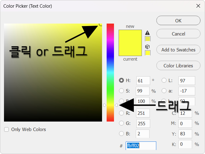 4. 컬러 아이콘을 클릭하고 원하는 컬러를 지정합니다.
