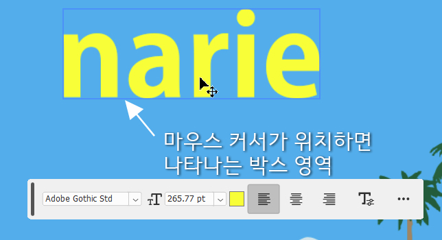 7. Ctrl +T를 눌러서 모서리 부분을 드래그하여 글자 사이즈를 더 키웁니다.