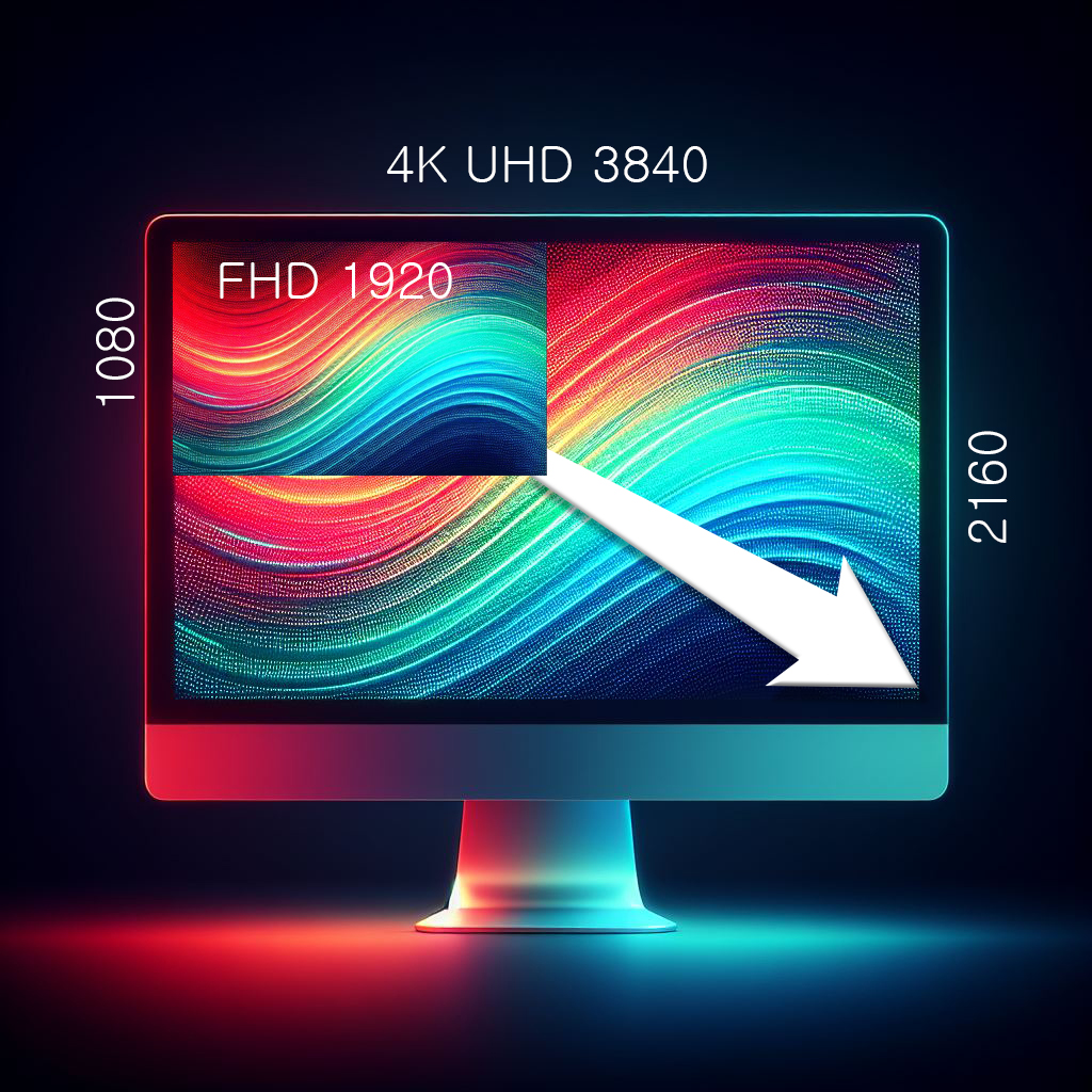 해상도는 가로 세로 픽셀수를 말합니다. 일반적으로 가장 대중적으로 사용하는 모니터는 FHD 1920X1080 픽셀이고 이 보다 면적대비 4배의 픽셀이 있는 디스플레이가 UHD 3840X2160이 있습니다. 가격은 보통 현재 시점으로 두 배 이상 비쌉니다.