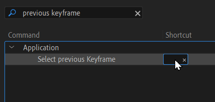 4) 검색창에 내용을 입력합니다. '이전 키프레임 (previous keyframe)'이라고 검색하면 해당 목록이 나타납니다.