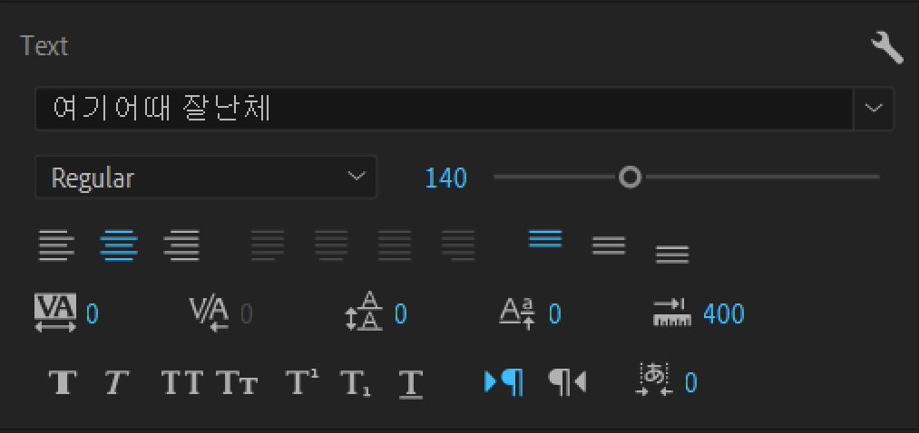 문서작업할 때 사용하는 옵션과 거의 같습니다. 글꼴을 선태하고, 크기를 지정하고 그 외 스타일을 입히는 내용들로 구성되어 있습니다.